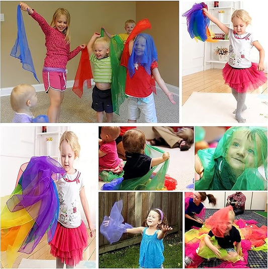 AIVIAI Juggling Scarves for Kids Play 24 Pcs Dance Music Scarfs Colorful Silk Actives Scarves Rhythm Band Scarves for Toddlers Children Movement(6 Colors)