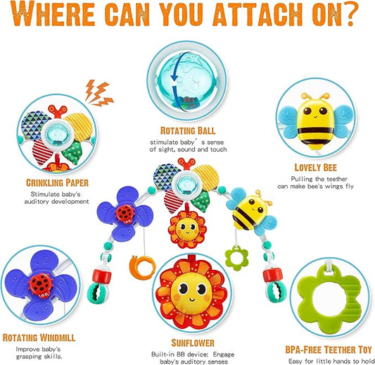 Adjustable Arch Bassinet Toys for Infant & Toddlers, Stroller Arch, Baby Crib Toys with Fascinating Hanging for Stimulating Baby’s Senses and Developing Motor Skills