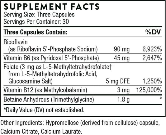 THORNE Methyl-Guard Plus - Active folate (5-MTHF) with Vitamins B2, B6 & B12 - Supports methylation & Healthy Level of homocysteine* - Gluten, Dairy & Soy-Free - 90 Capsules