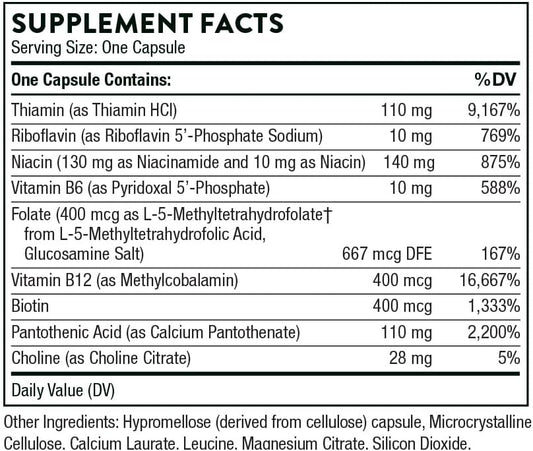 THORNE Stress B-Complex - Vitamins B2, B6, B12, and Folate in Highly-Absorbable and Active Forms - Extra Vitamin B5 for Adrenal Support, Stress Management and Immune Function* - 60 Capsules