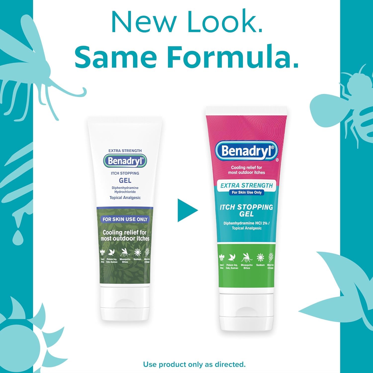 Benadryl Extra Strength Anti Itch Relief Gel, 2% Diphenhydramine HCl, Relief from Insect Bites, Sunburn & More, Great for Camping Essentials, 3.5 fl oz