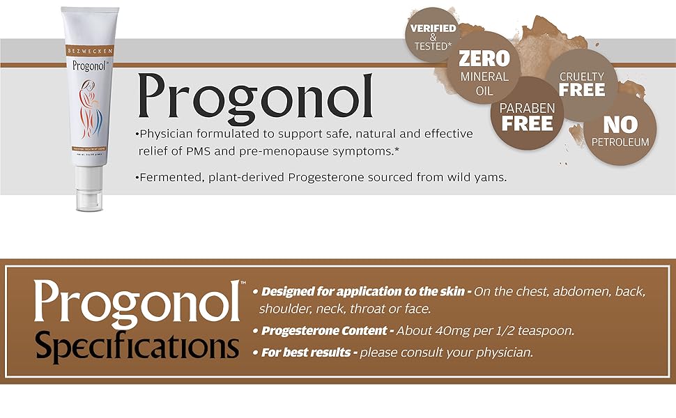 Bezwecken - Progonol - 2oz Crème - Professionally Formulated Pre-Menopause & PMS Symptom Support - Safe, Natural, Paraben Free - 30 Day Supply