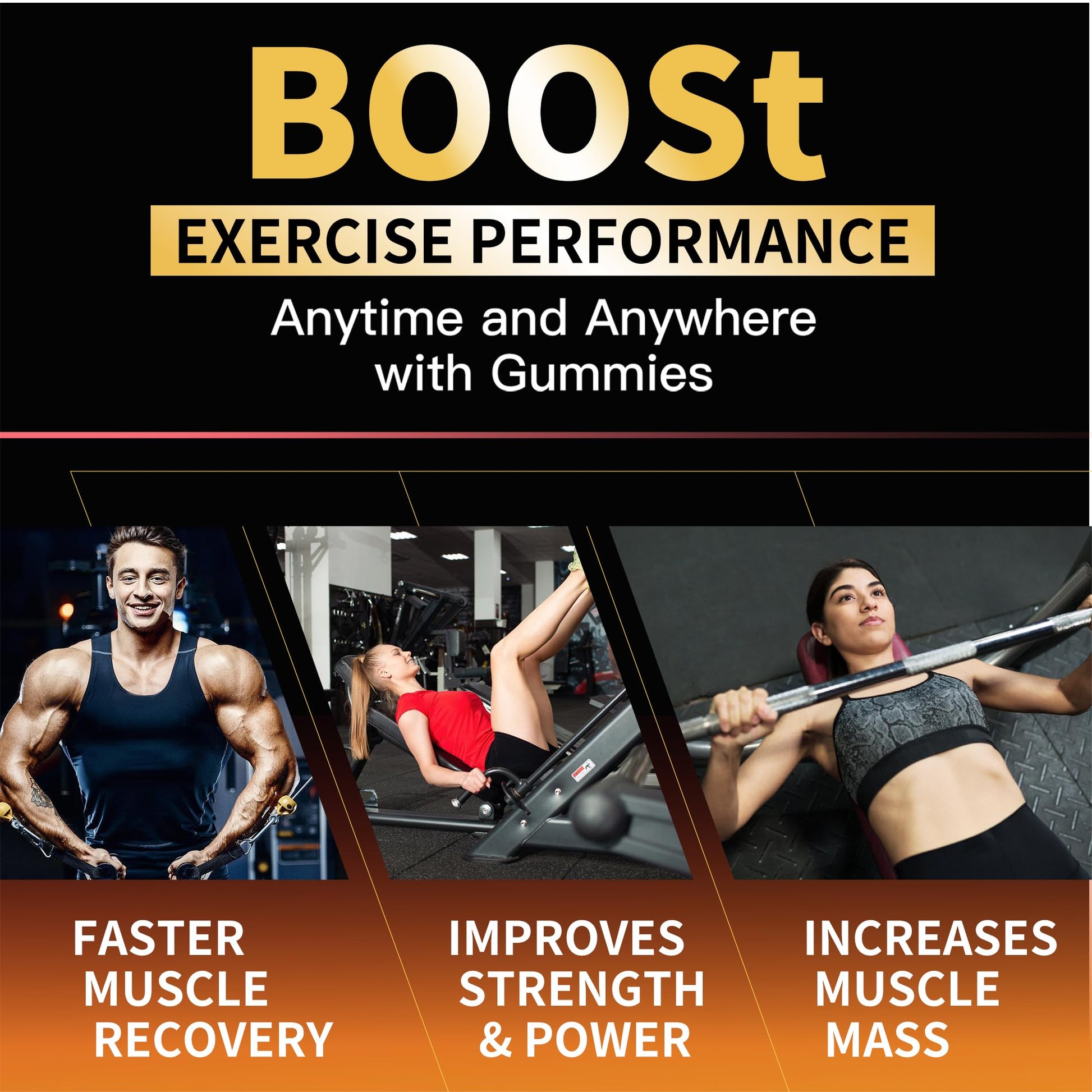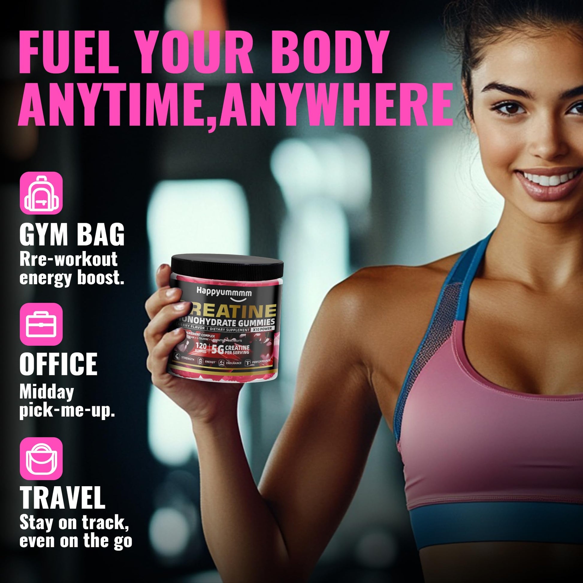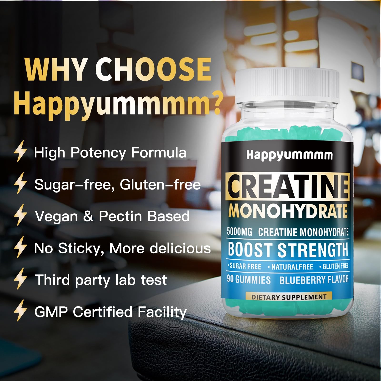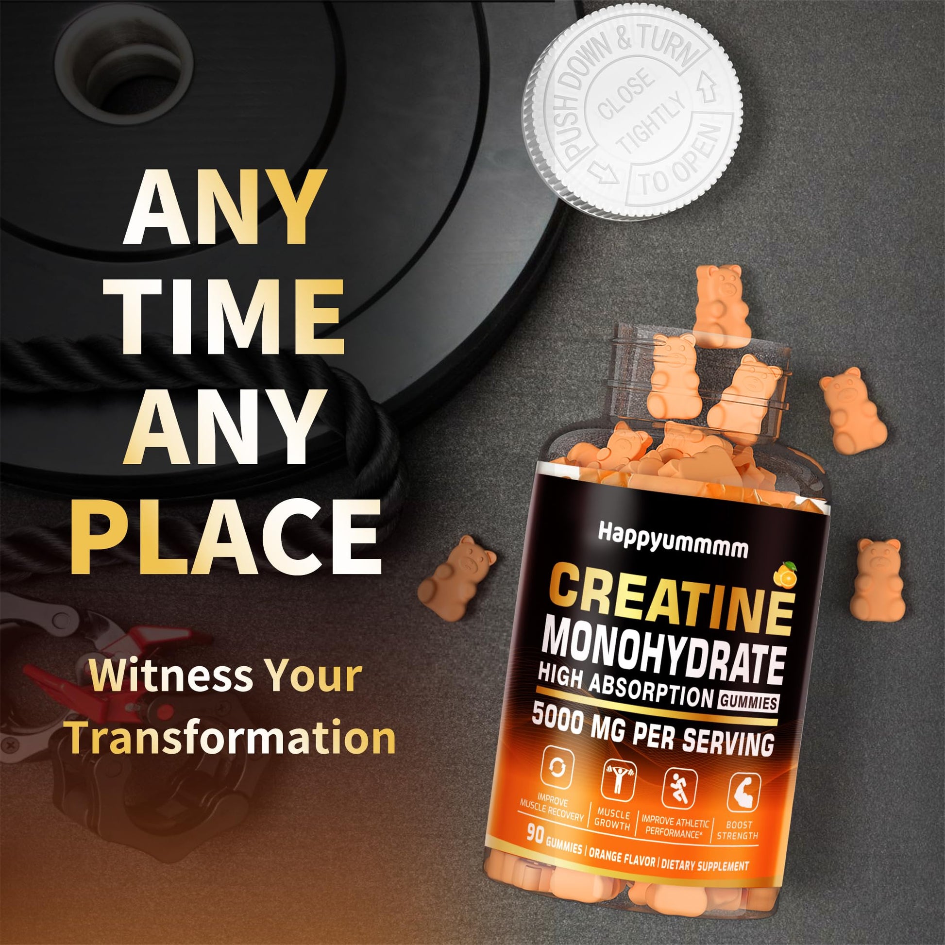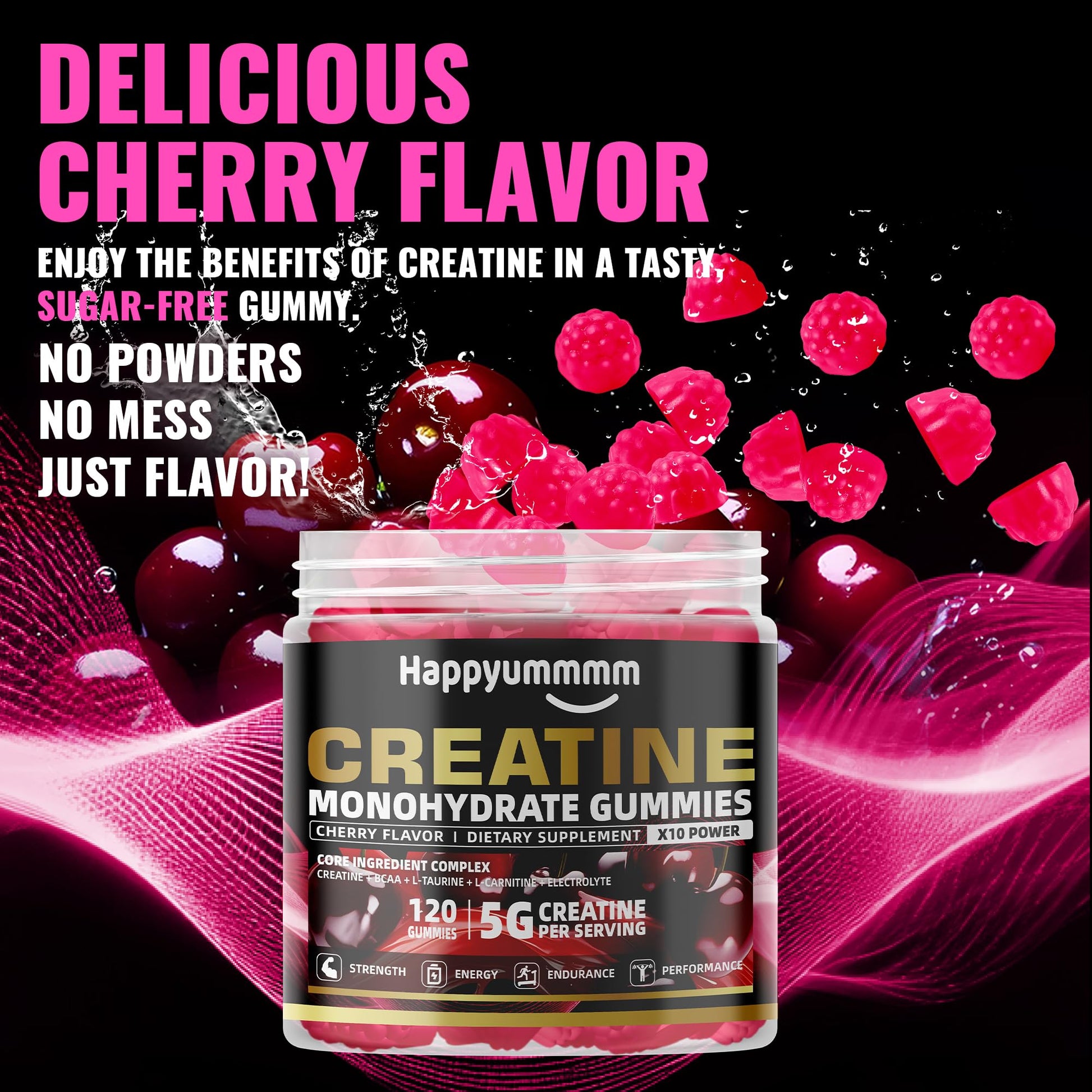 - [ Key Benefits]: Our Creatine monohydrate gummies are an easy way to consume, 2 gummies per serving, you can take it at any time, any place. It improved muscle strength, muscle recovery, improve endurance and energy boost. Suitable for a variety of users, and enjoyable taste.