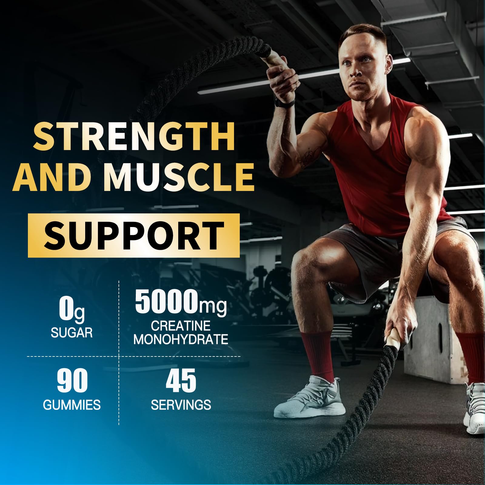 - [Premium Formula,Maximum Efficacy]: Our Creatine monohydrate gummies contains 5g=2 gummies pure creatine monohydrate per serving combined for Maximum Benefits.