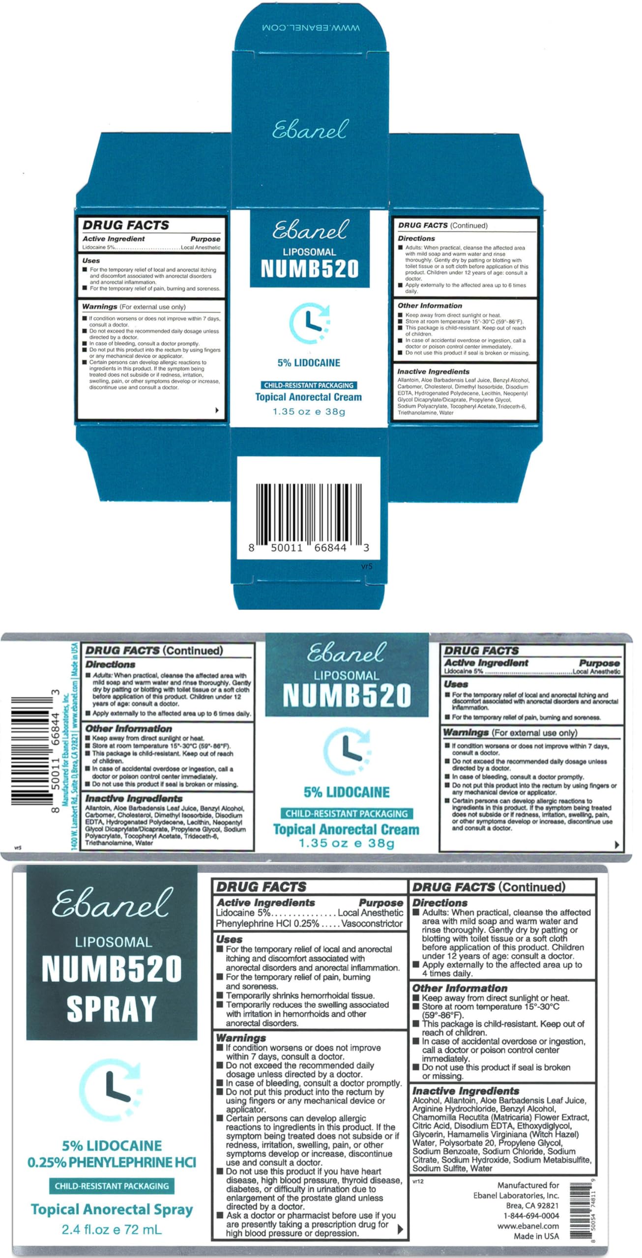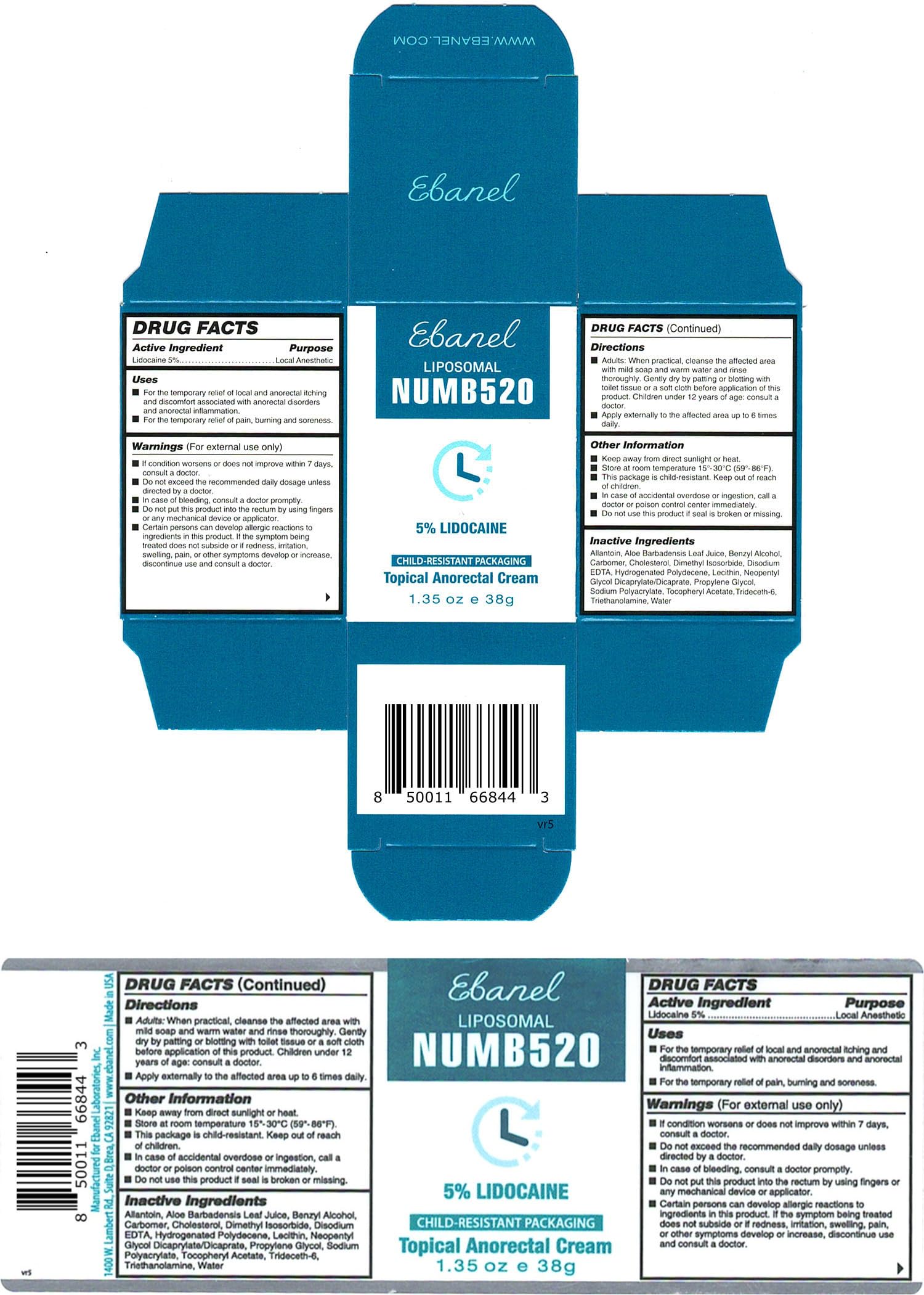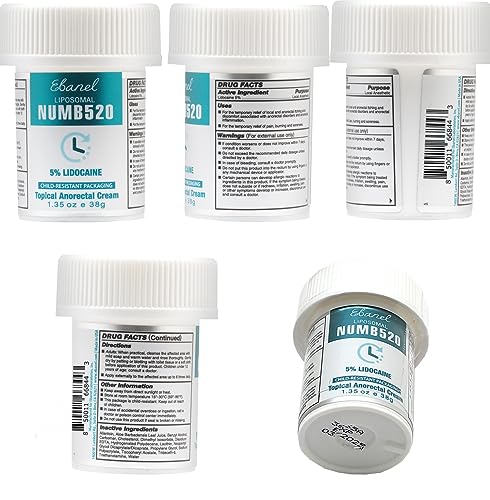 Ebanel 5% Lidocaine Numbing Cream, Pain Relief Burn Itch Numb Cream, Maximum Strength Topical Anesthetic with Allantoin, Vitamin E for Local and Anorectal Uses, Hemorrhoid Treatment, 1.35 Oz