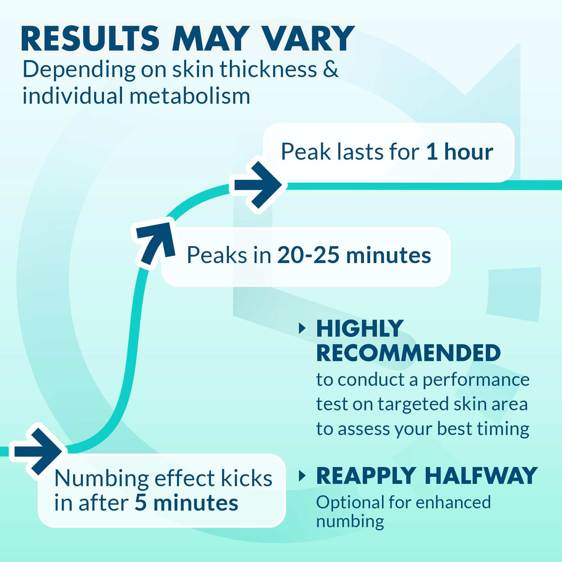- Enhanced Liposomal Deep Penetrating Skin Numbing Cream - Best efficacy, fast-acting & long-lasting. It begins numbing in 3-5 minutes, peaks after 20-25 minutes, and lasts 1 hour from its peak. Numbing performance may vary depending on the thickness of the skin area and individual metabolism