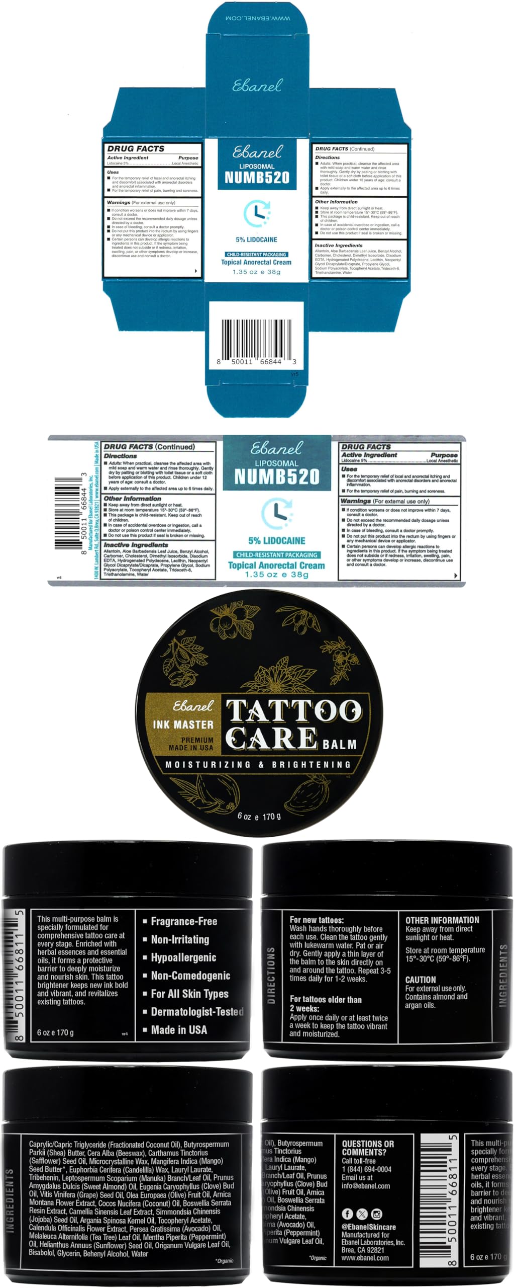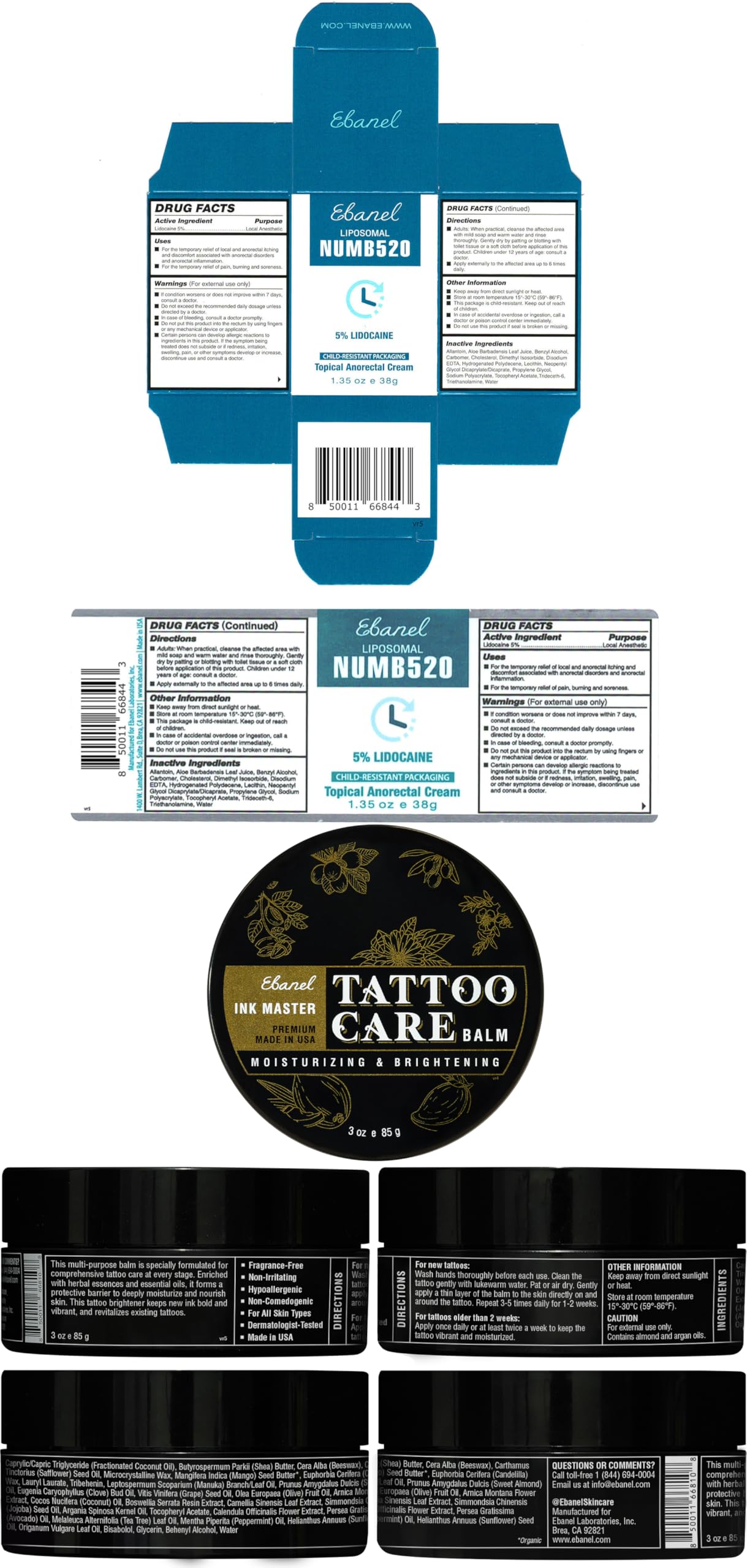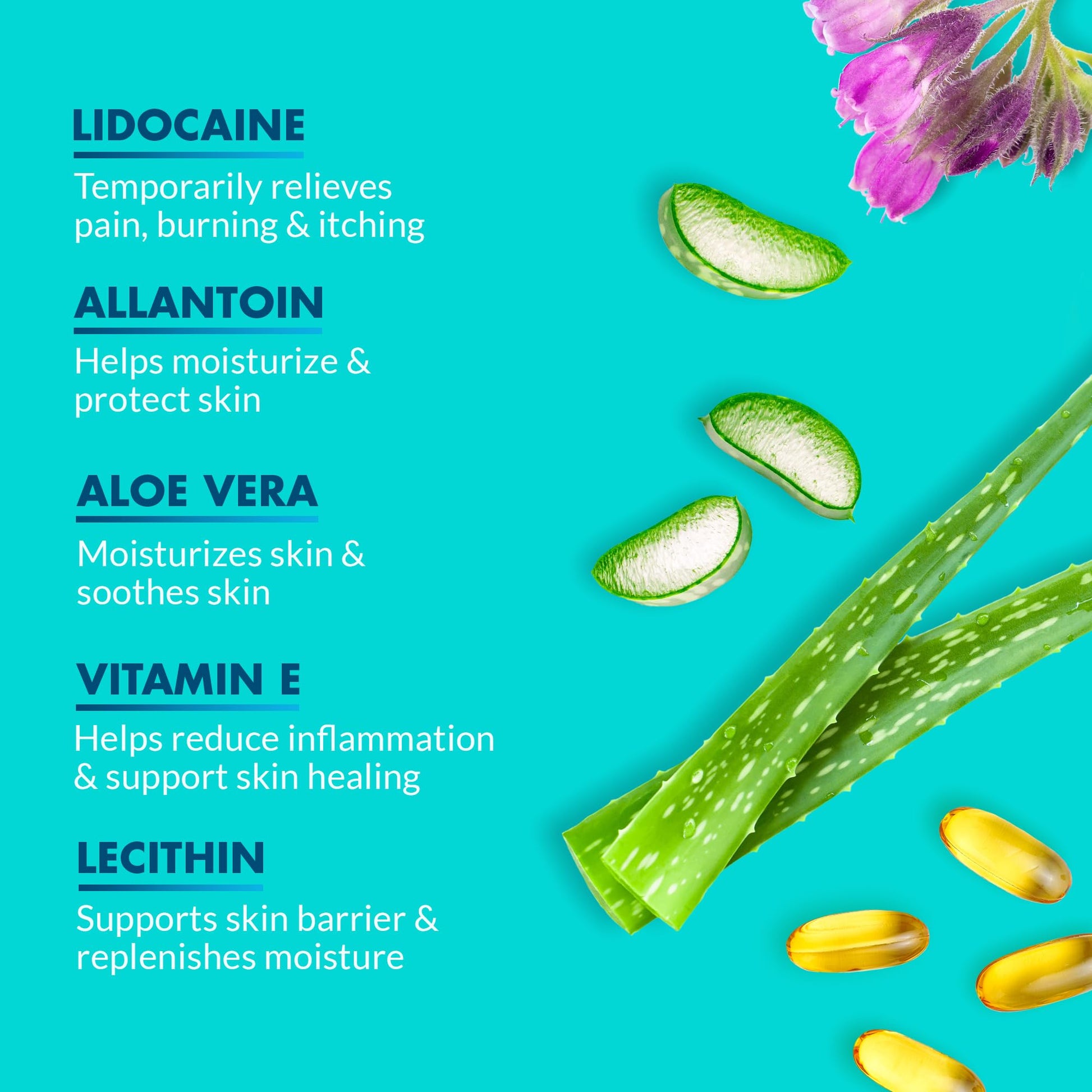 5% Lidocaine | 5% Lidocaine + Phenylephrine | Essential Oils+Herbal Essences | 5% Lidocaine + Phenylephrine | 2% Miconazole+Undecylenic Acid | Urea+Salicylic Acid+Tea Tree | Urea + Epsom Salt + BHA + AHA |