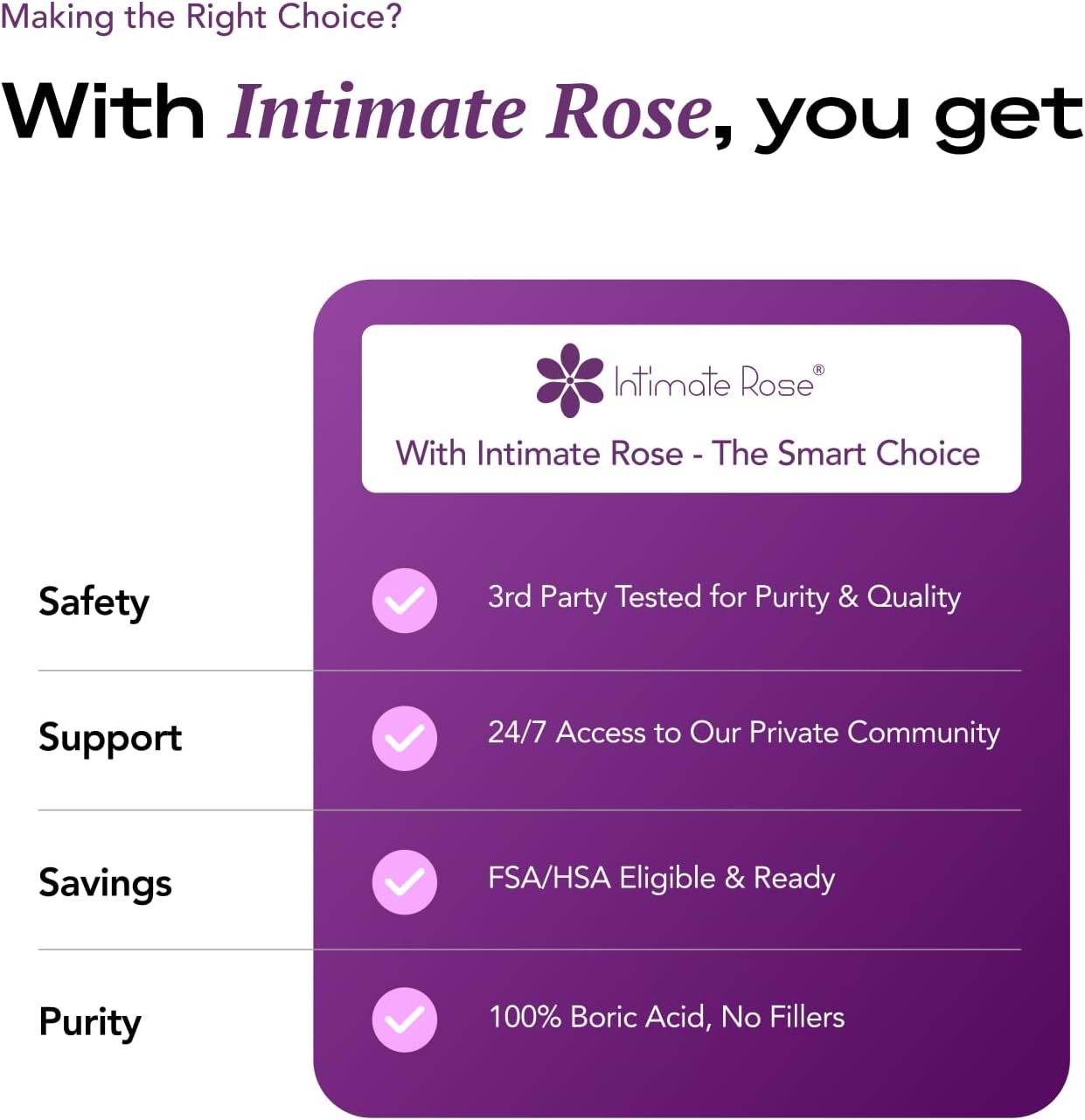 Intimate Rose 30ct Boric Acid Suppositories for Women - 600mg Vaginal pH Balance Pills for Odor Relief, BV Support - Made in USA