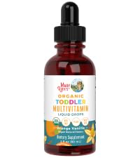 - Organic Toddler Multivitamin with Iron: Our first liquid multivitamin formulated just for toddlers with iron! Support growth and more with these liquid drops. Packed with some essential nutrients for your child such as vitamins A | C | B | D | E | iron | and zinc | all in a delicious orange-vanilla flavor.