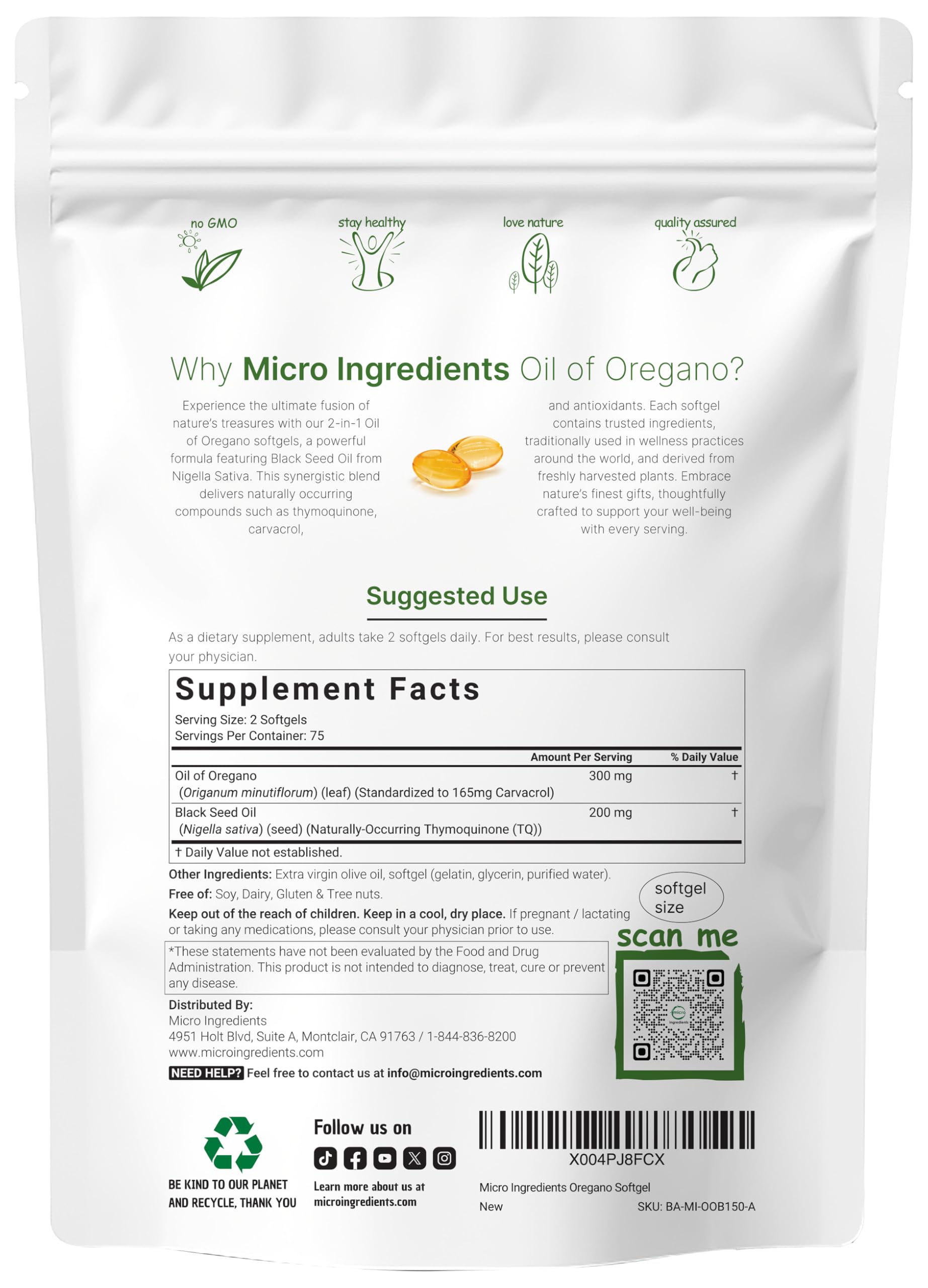 - Experience the potency of a fresh Oil of Oregano from Origanum minutiflorum leaves and 200mg Black Seed Oil from Nigella sativa per serving, a 2-in-1 complex that delivers essential support for seasonal immune health.