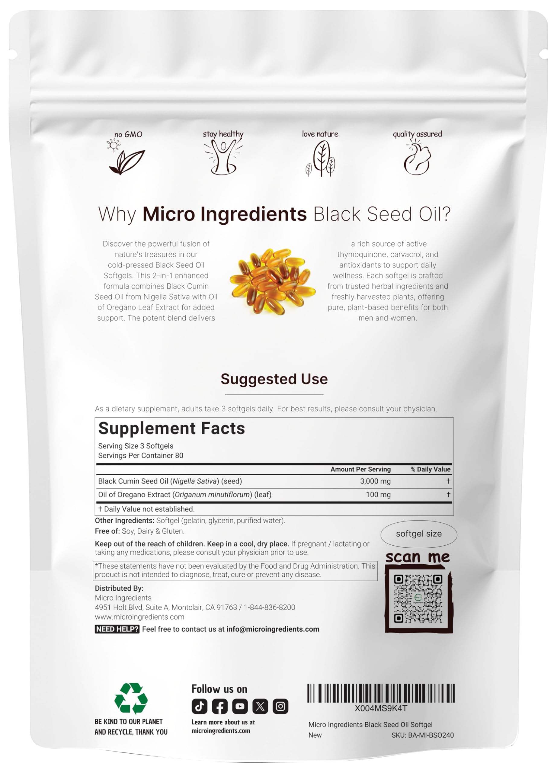 Micro Ingredients Oil of Oregano Softgels, 300 Count | 2 in 1 Formulated with Black Seed Oil, 4X Strength Carvacrol & Thymoquinone | Plant Based, Non-GMO, & Immune Support