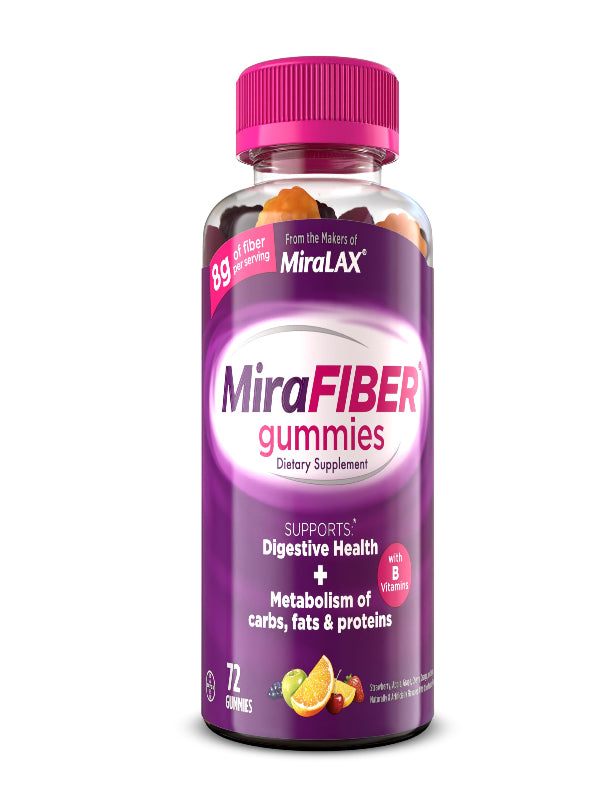MiraFIBER Gummies, From The Gut Experts at MiraLAX, 8g of Daily Prebiotic Fiber with B Vitamins to Support Digestive Health and Metabolism, Fruit Flavored Fiber Gummies, 72 Count