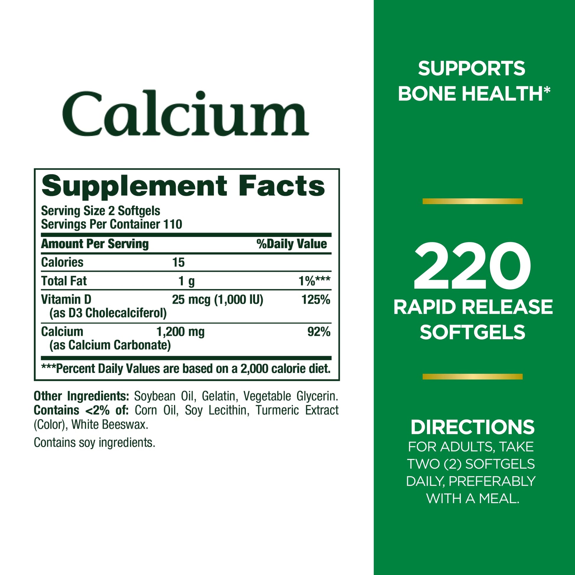 Nature's Bounty Calcium 1200 mg with Vitamin D3 - Bone Health Softgels, Calcium and Vitamin D Supplement, 120 ct (Pack of 1)