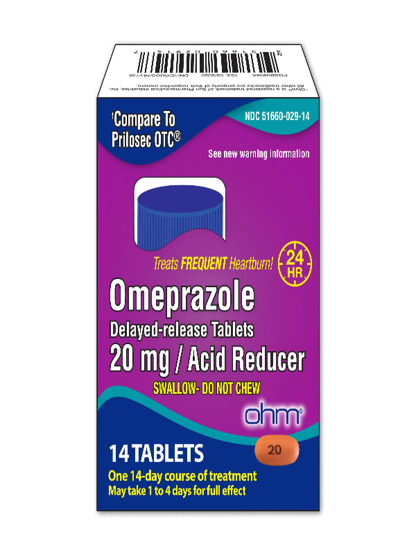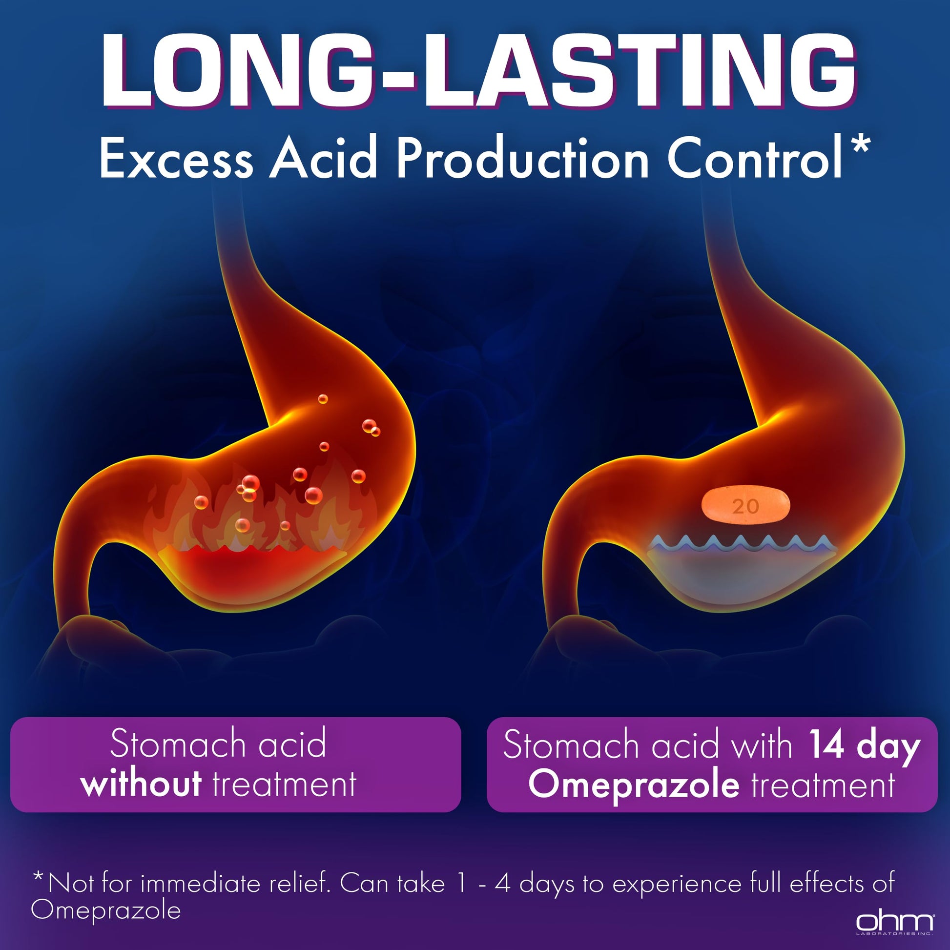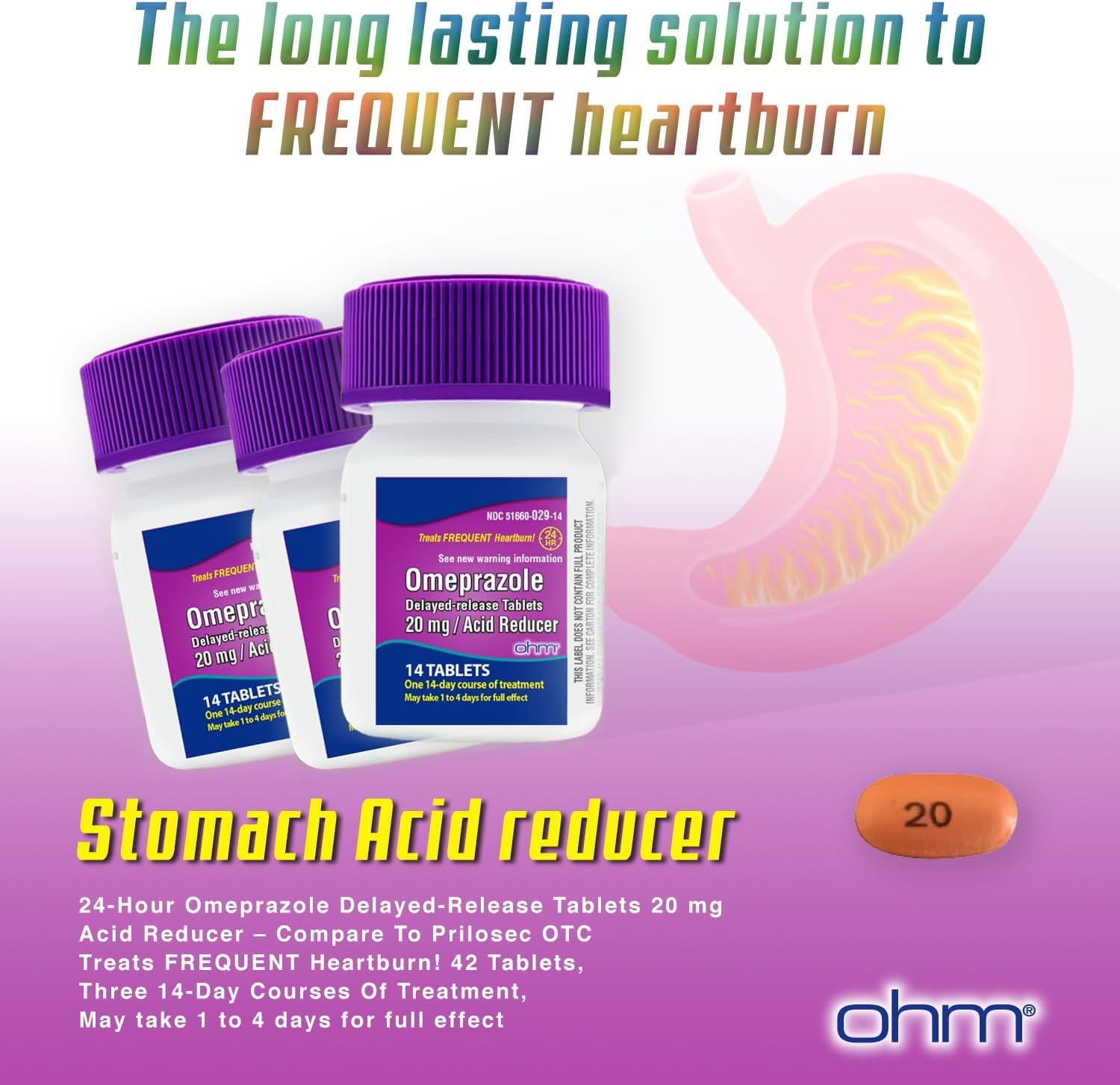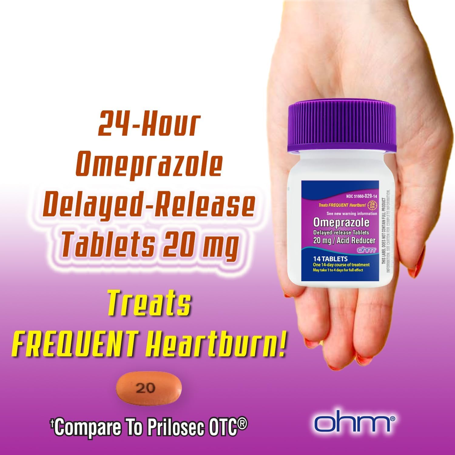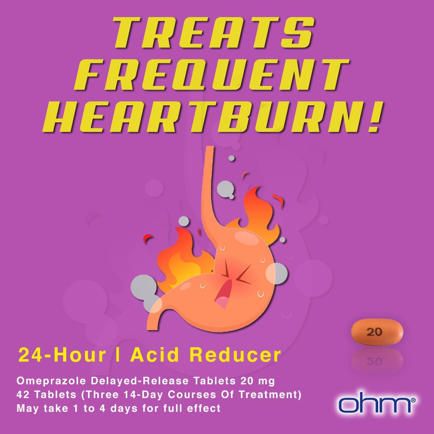Ohm Omeprazole Delayed-Release Tablets, 20mg Acid Reducer, Treats Frequent Heartburn (2 Weeks of Supply, 14, Count)