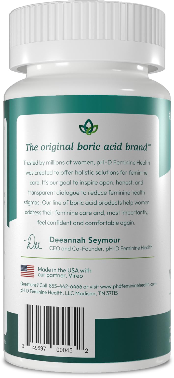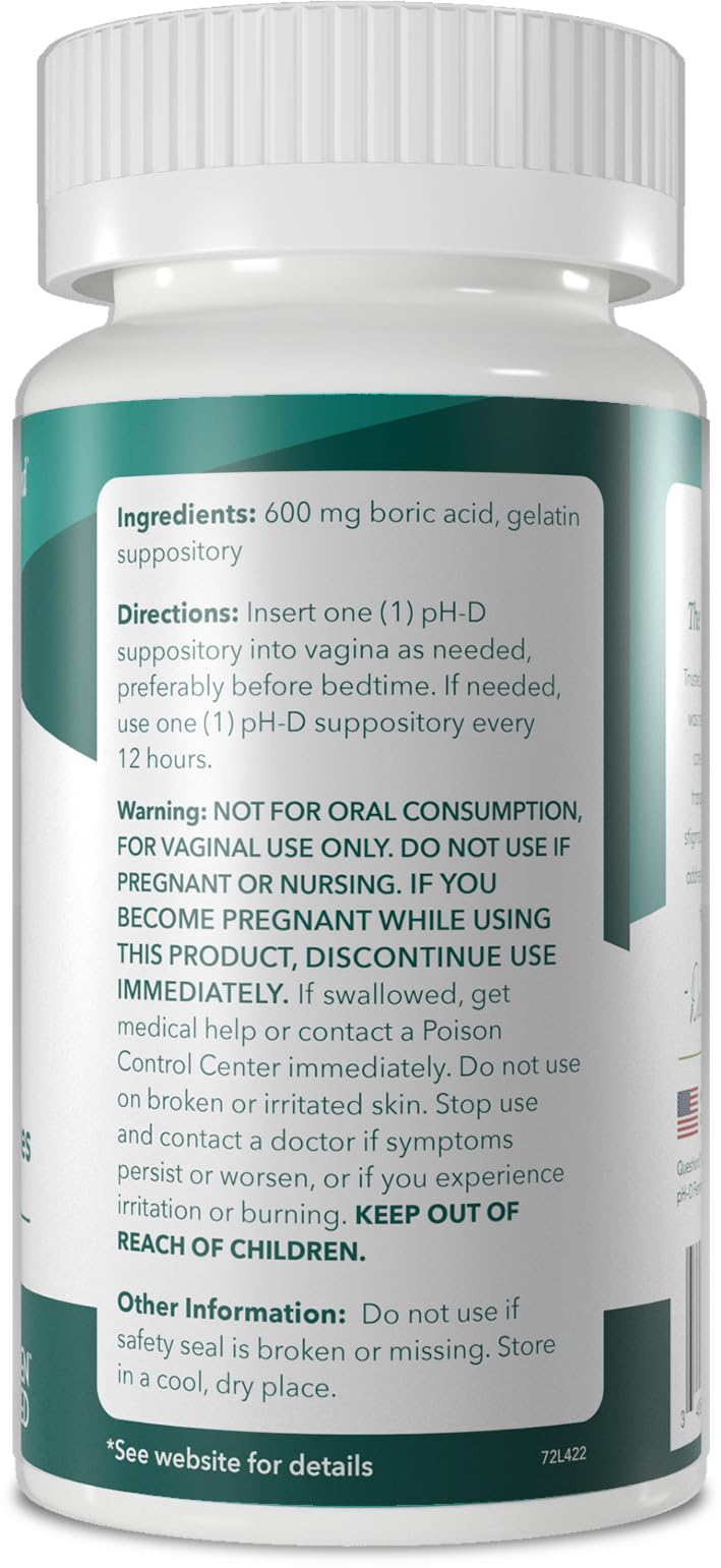 - A GAME CHANGER: pH-D Boric Acid Suppositories are the #1 Doctor Recommended brand made with 600 mg of boric acid in each suppository. pH-D Boric Acid Suppositories are your go-to for a safe, effective, and holistic solution for vaginal odor.