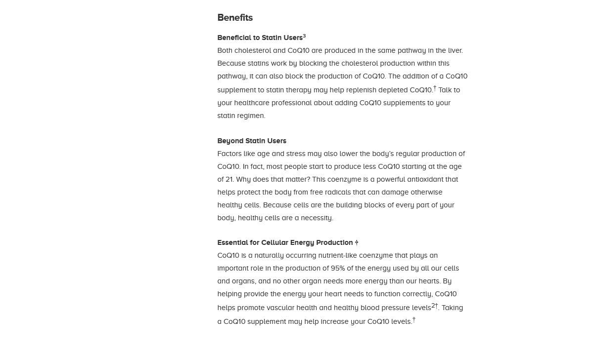 | Product Benefits | Energy Management, Heart Health Support, Vascular Health Support, Antioxidant, Beneficial to Statin Users See more |