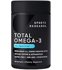 Sports Research Total Omega-3 Fish Oil from Wild Sockeye Salmon, Alaska Pollock, Antarctic Krill, Astaxanthin + Phospholipids & Wax Esters for Absorption | 960mg of EPA & DHA - Fresh Lemon Scent (120