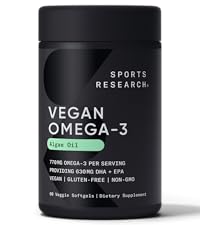 Sports Research Vegan Omega-3 Fish Oil Alternative from Algae Oil - Highest Levels of DHA & EPA Fatty Acids | Non-GMO Verified & Vegan Certified - Fresh Lemon Scent - 60 Veggie Softgels