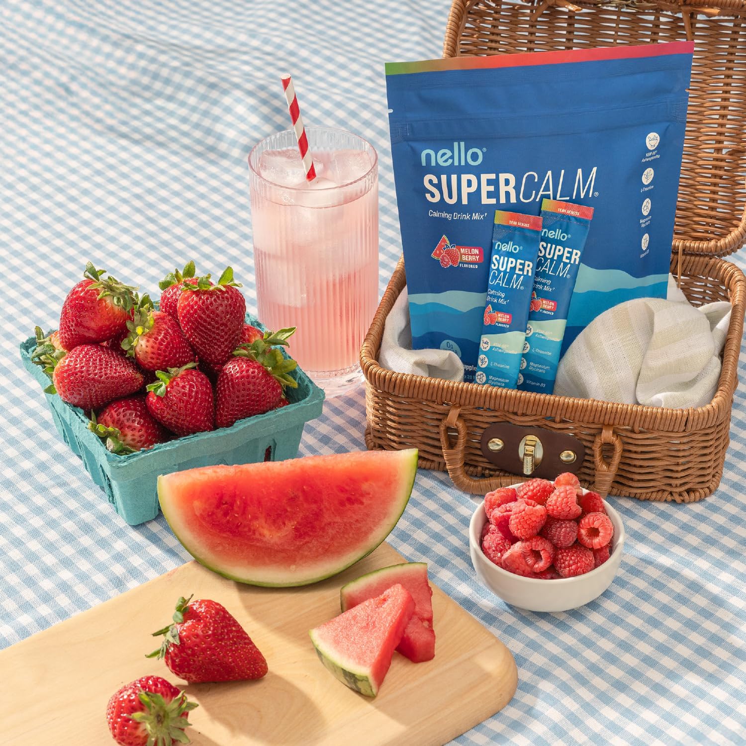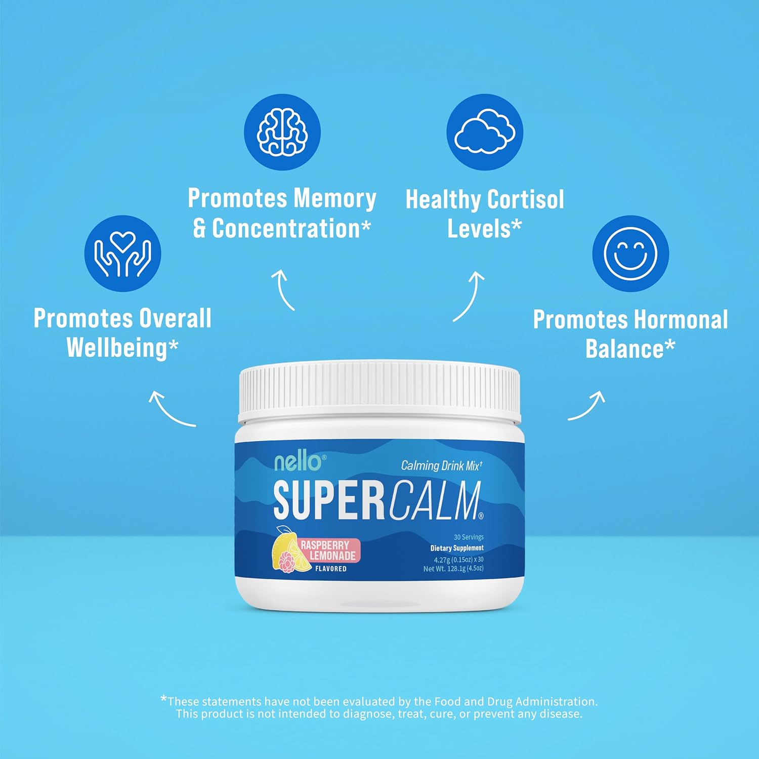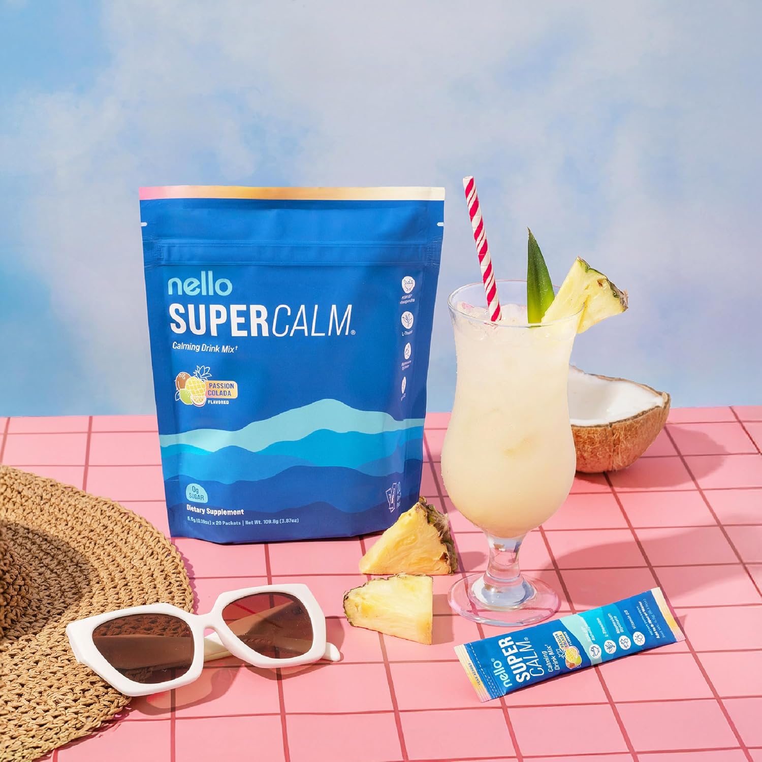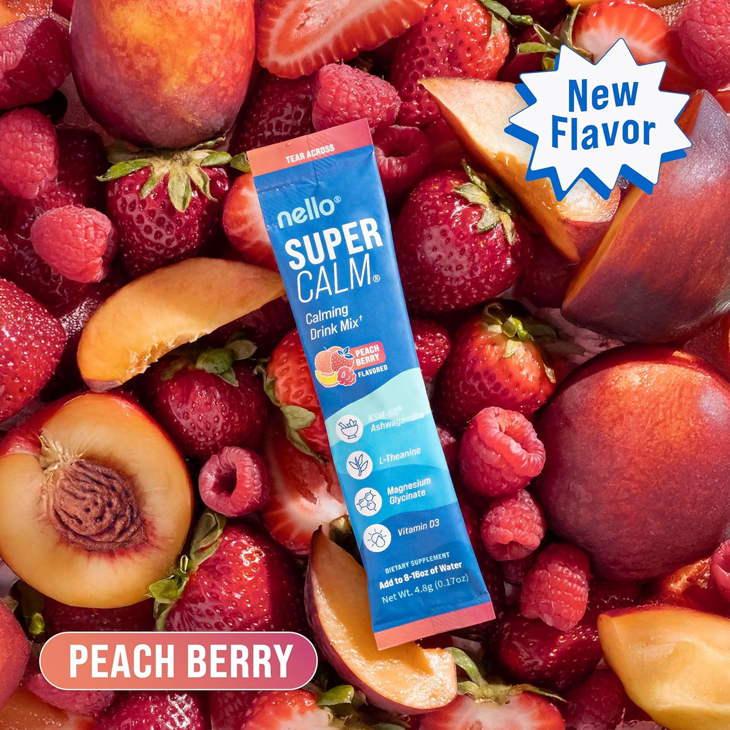 - REFRESH, RELAX, REFOCUS: Nello's SuperCalm supports you in effortlessly enjoying relaxation and focus anytime, anywhere. Savor the vibrant flavors of raspberry lemonade in convenient, on the go packets or the multi-serving canister while promoting your body's vitality and equilibrium.
