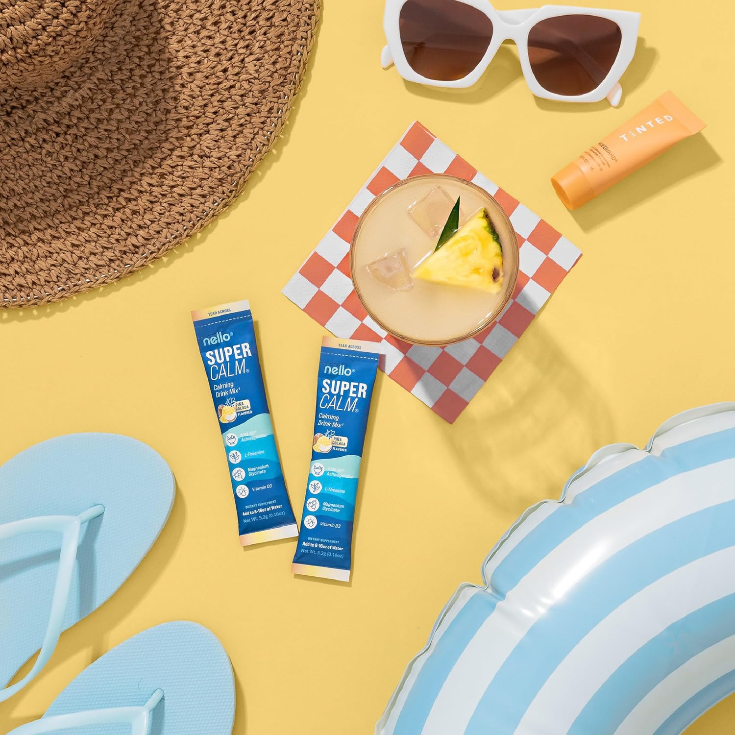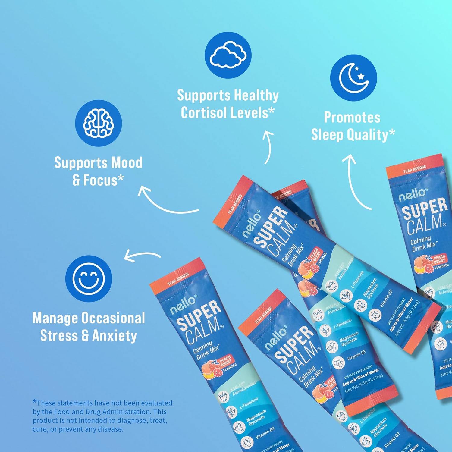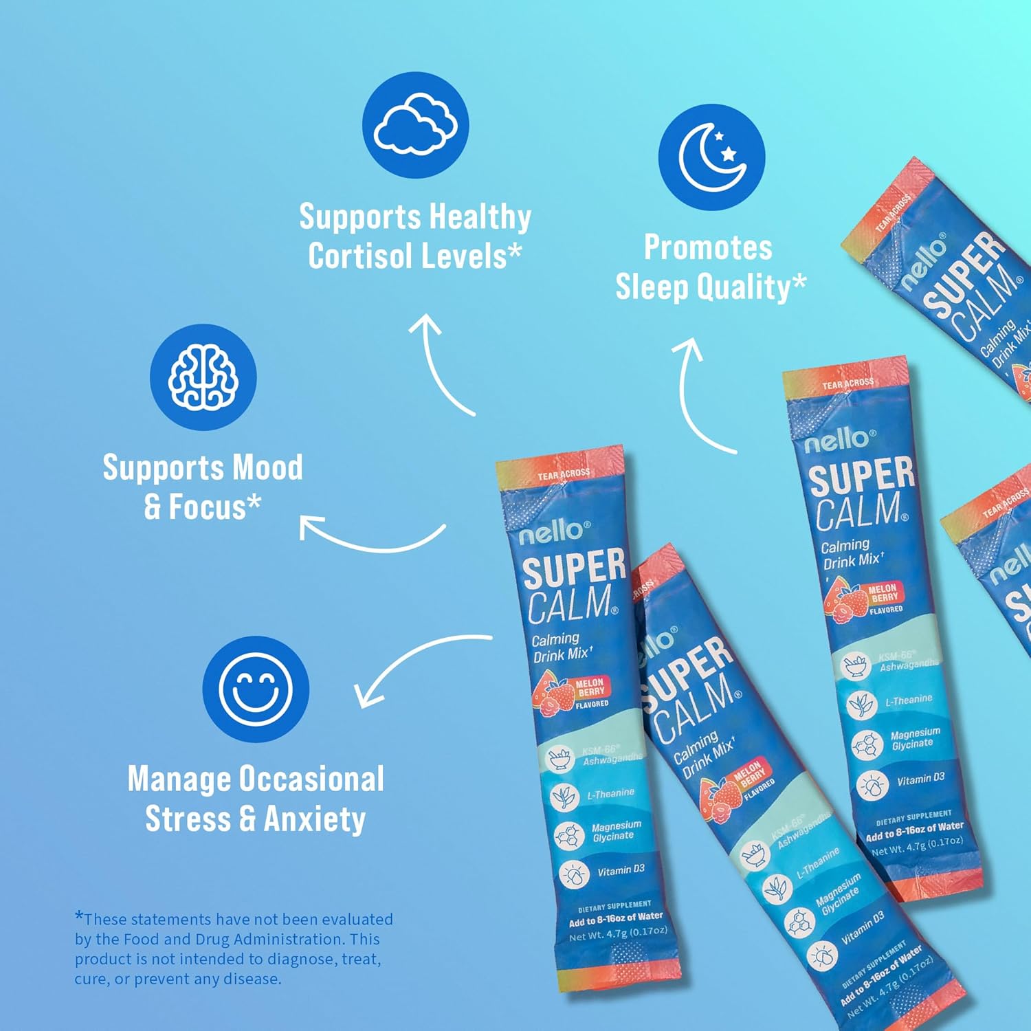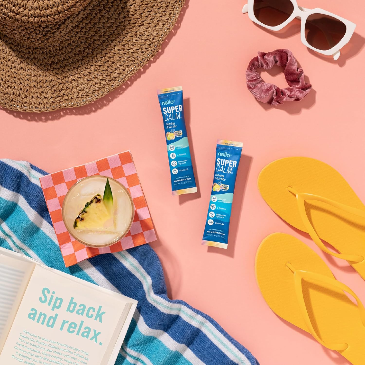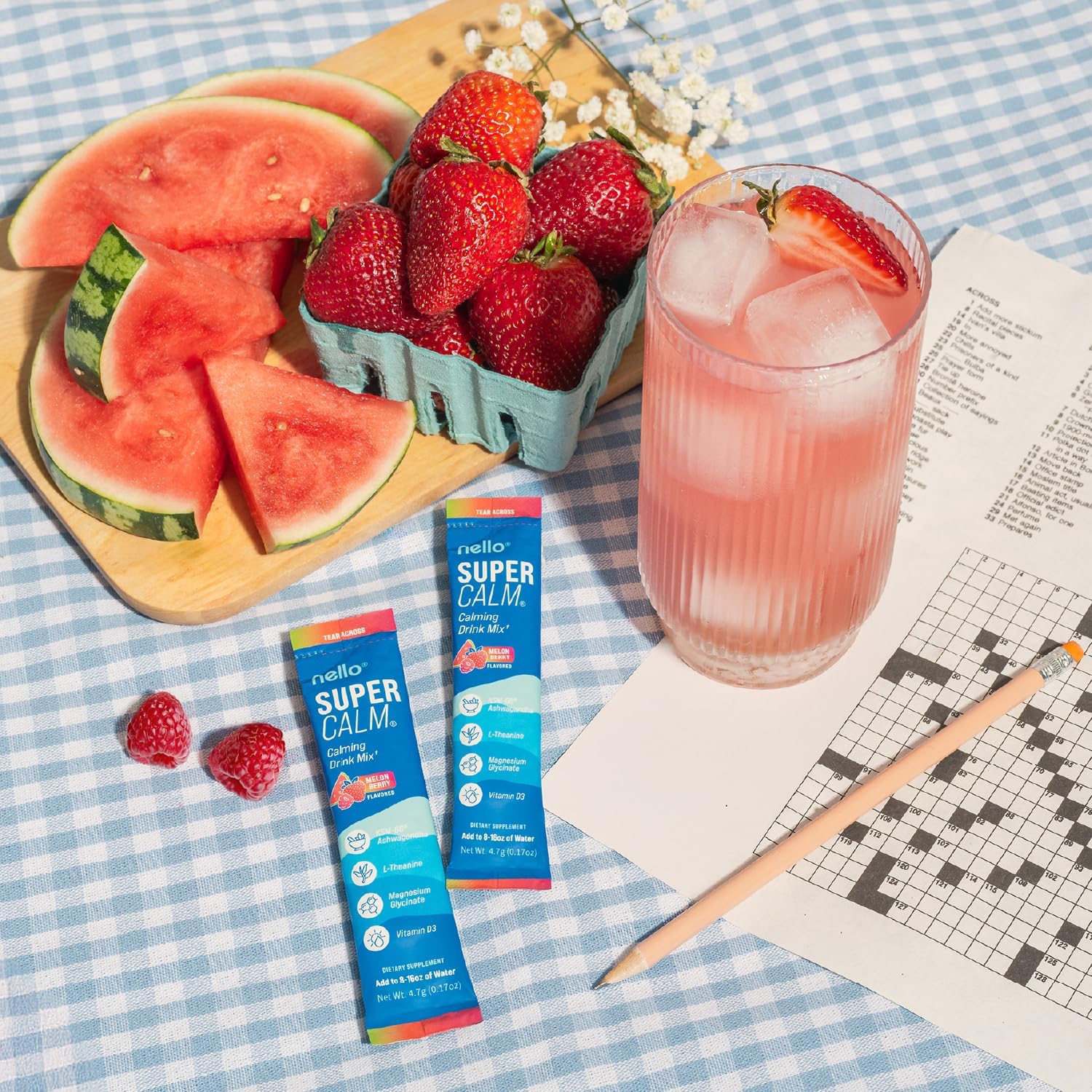 - REFRESH, RELAX, REFOCUS: Nello's SuperCalm supports you in effortlessly enjoying relaxation and focus anytime, anywhere. Savor the vibrant flavors of raspberry lemonade in convenient, on the go packets or the multi-serving canister while promoting your body's vitality and equilibrium.