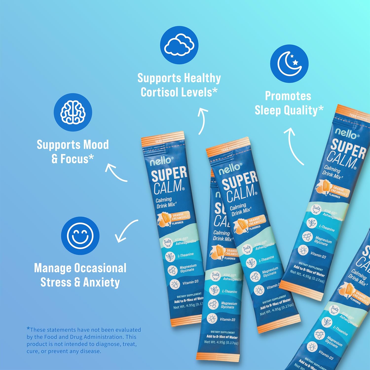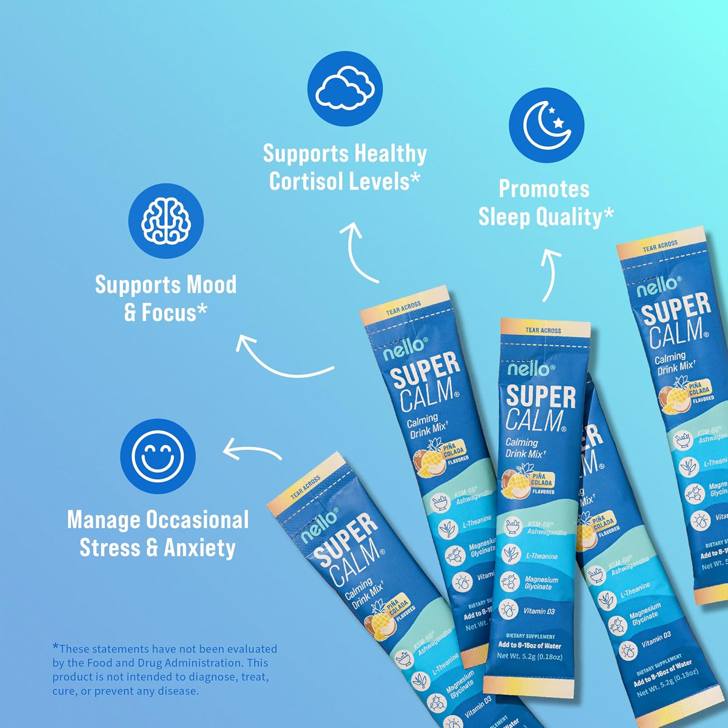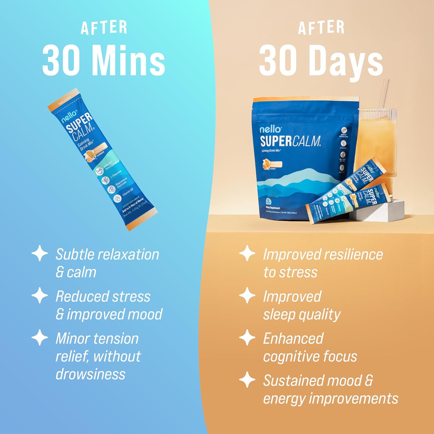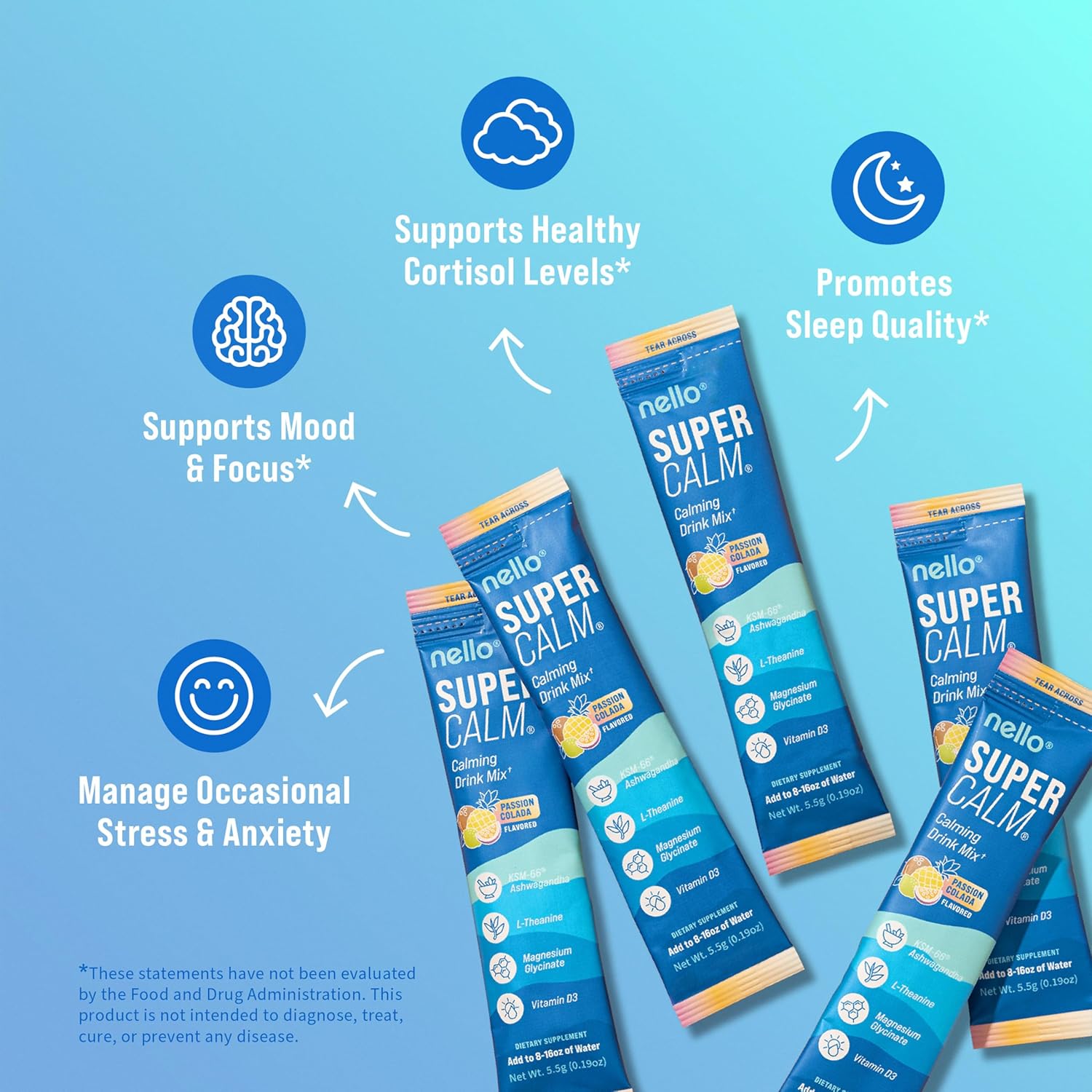 - NOURISH YOUR BODY AND MIND: With a foundation of clinically backed vitamins and minerals, Nello's SuperCalm Adaptogenic Powder Drink Mix is expertly formulated to help you refine your focus and overall well-being, and optimize your body's health without compromising on taste!
