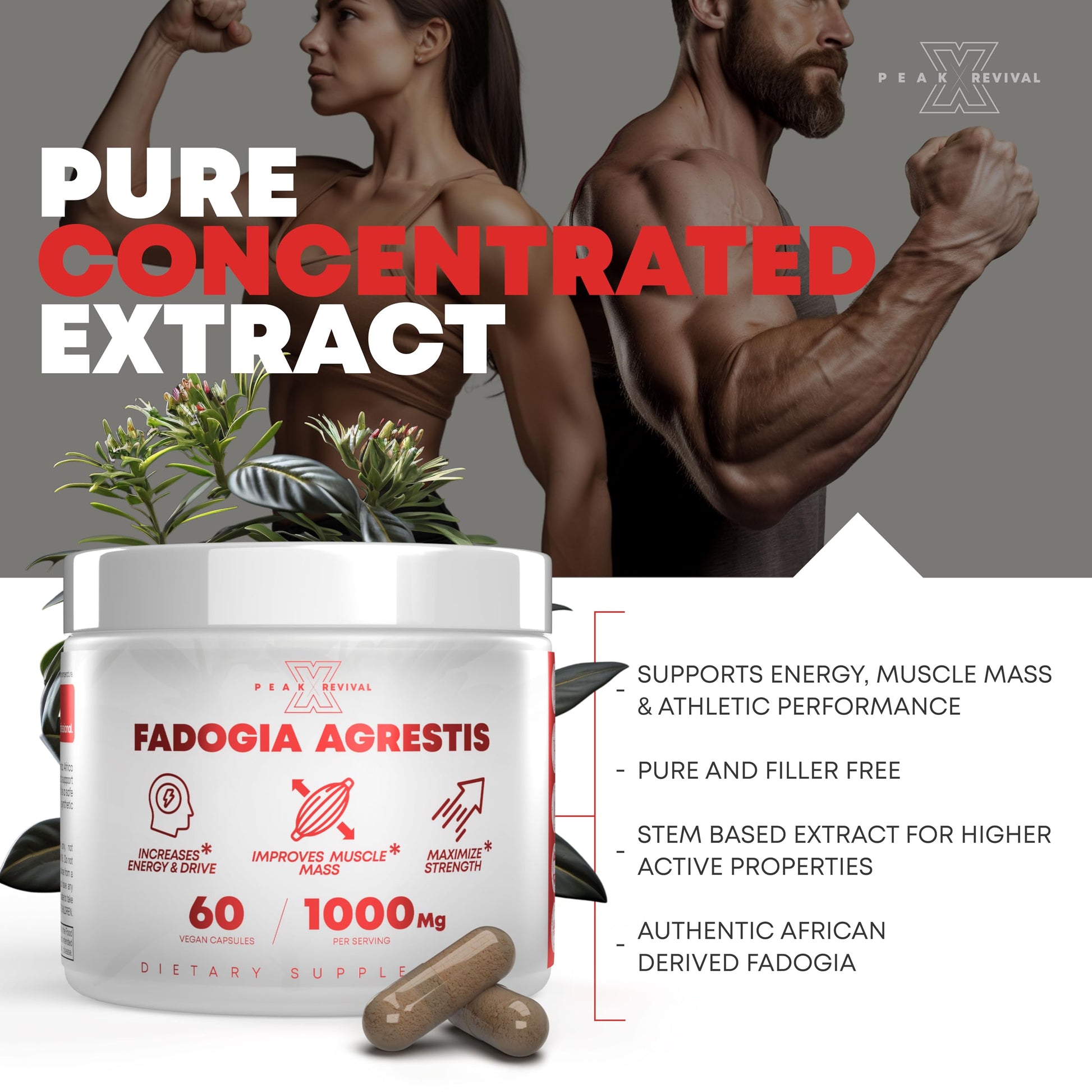Peak Revival-X Fadogia Agrestis 1000mg Per Serving Supplement - Potent Extrac...